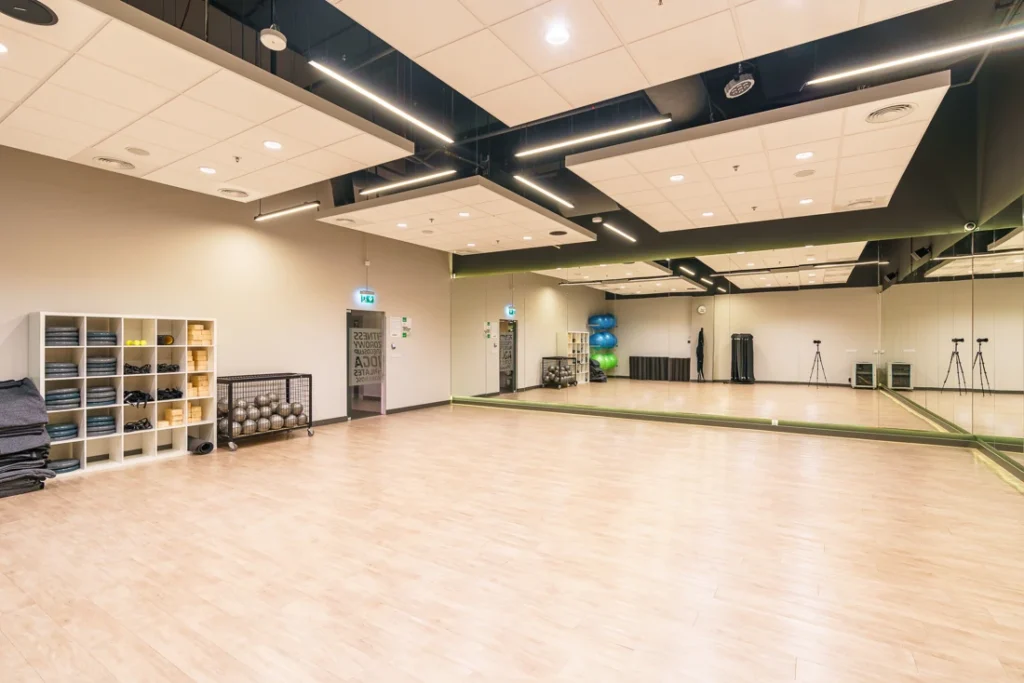 - Bogaty wybór zajęć grupowych i stref treningowych